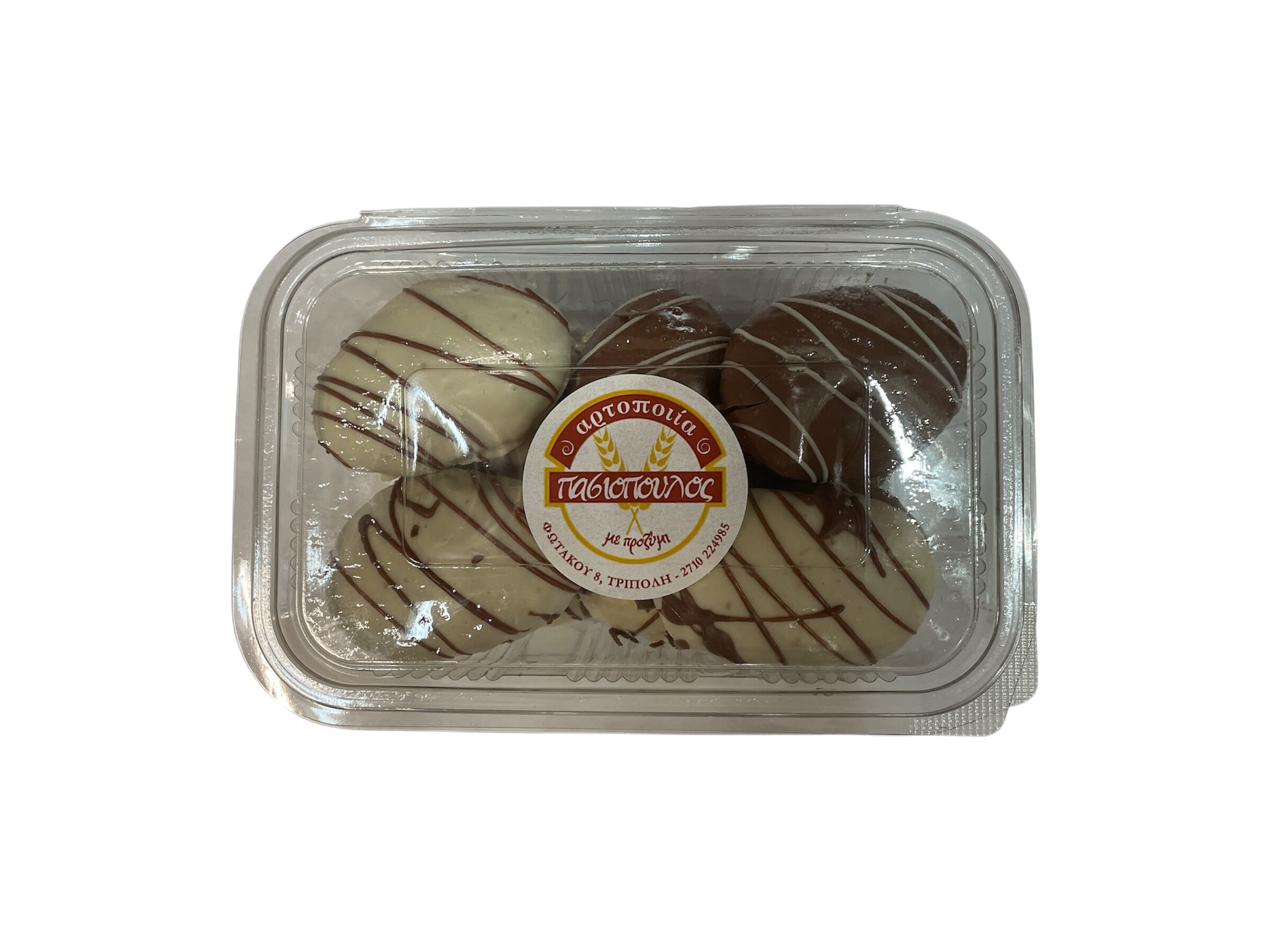 Χριστουγεννιάτικα μελομακάρονα σε διάφορες γεύσεις αρτοποιείο Πασιόπουλου. Επιλέξτε από τους συνδιασμούς με σοκολάτα γάλακος, λευκή σοκολάτα και καραμέλα. Απολαυστικά προϊόντα αρτοποιίας για τις γιορτές του χρόνου!